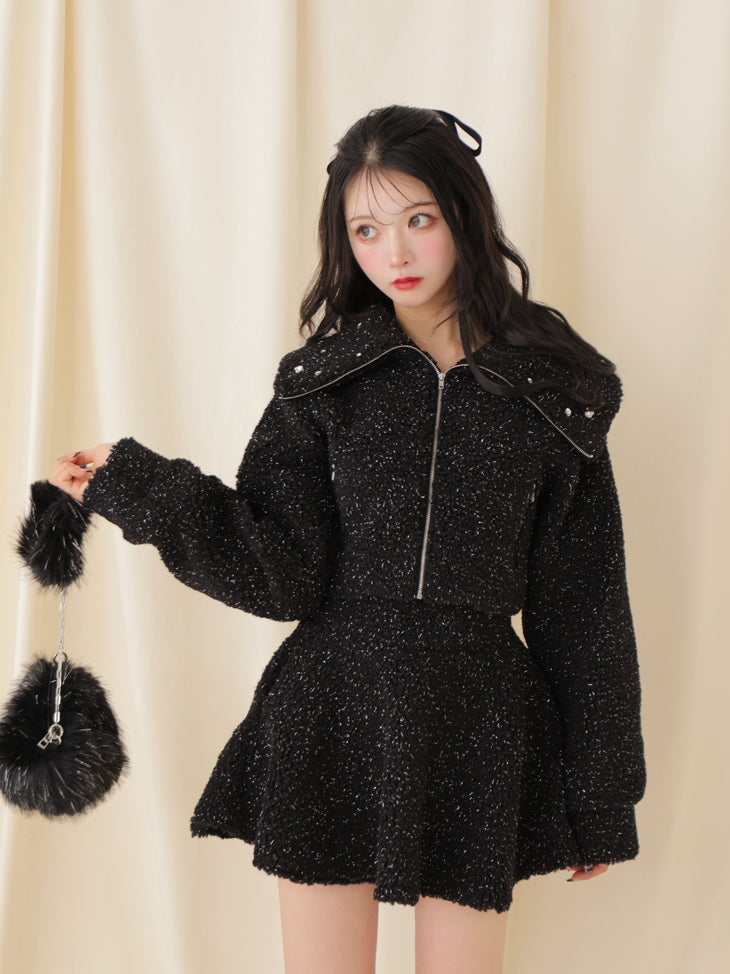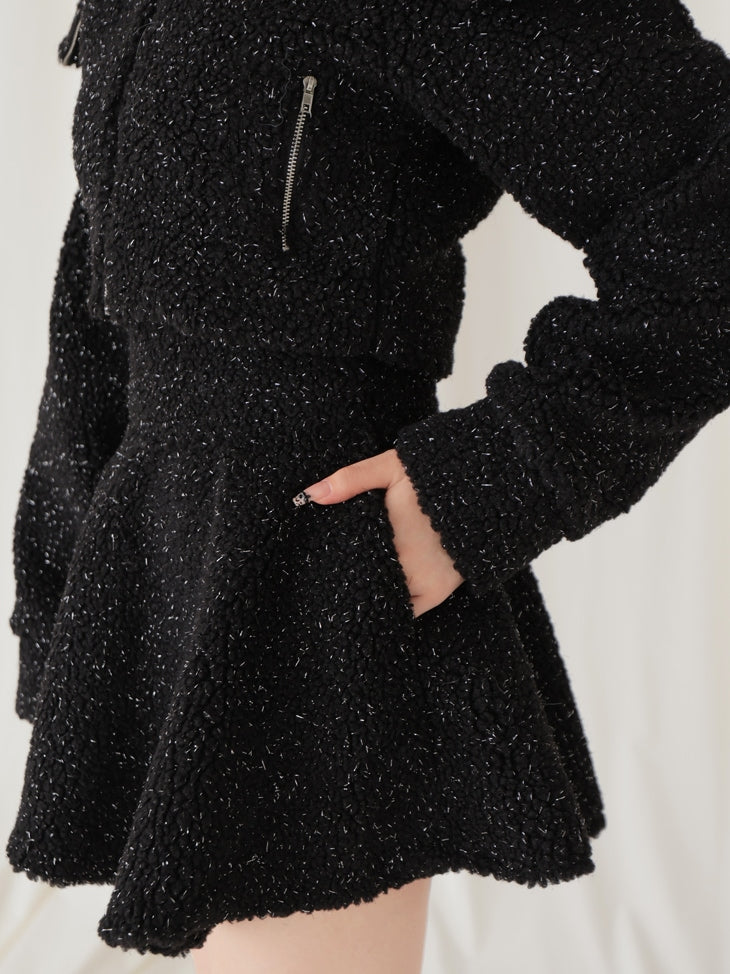 【ラメ糸が織り込まれた、あたたかなボアのフレアスカート。セットアップ対応】