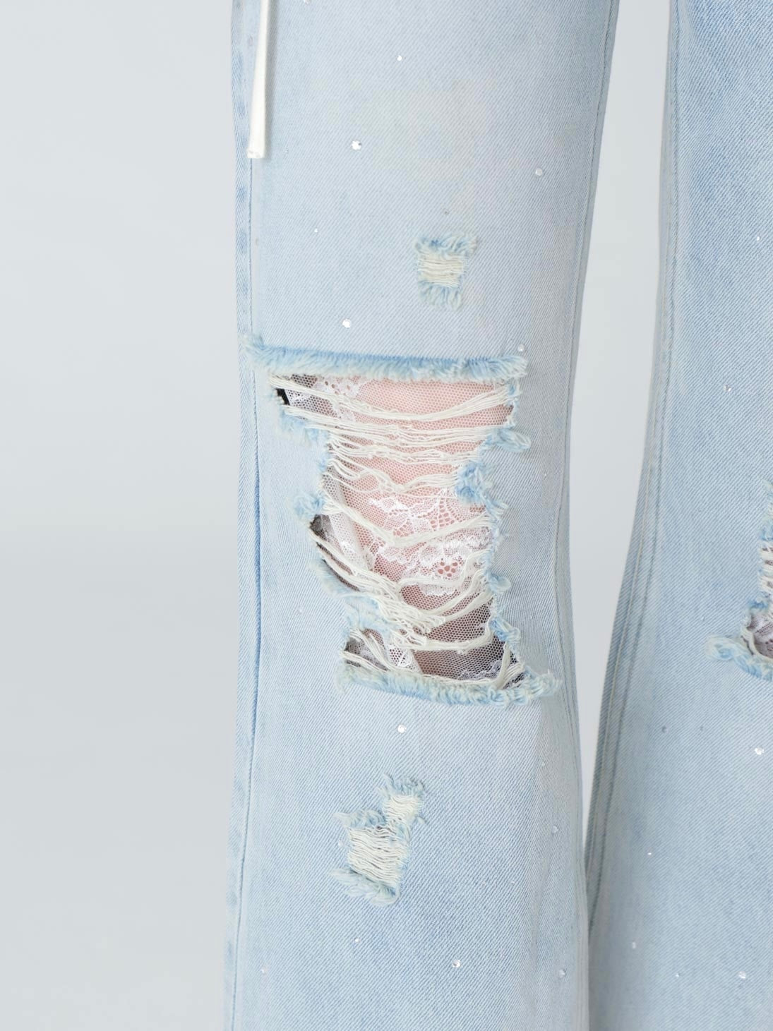 ・膝のダメージ加工×レースのチラ見せがポイント♡