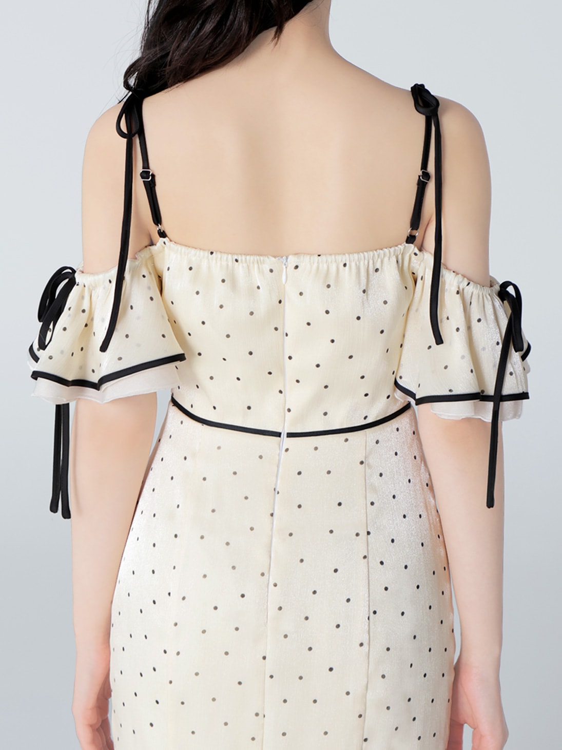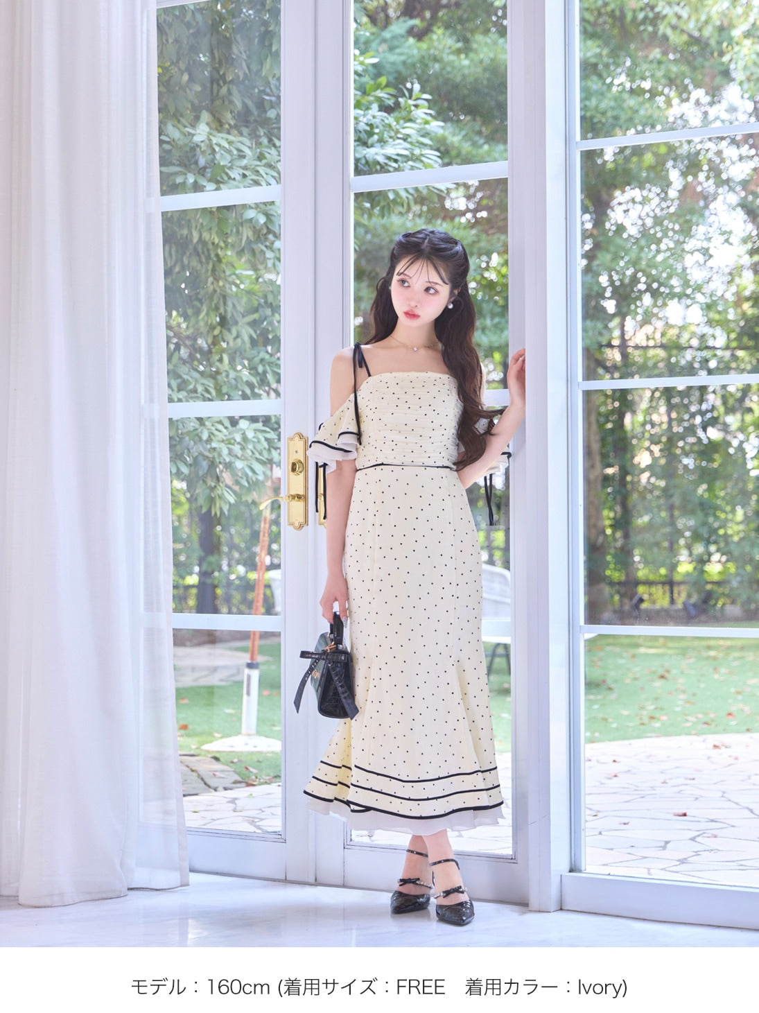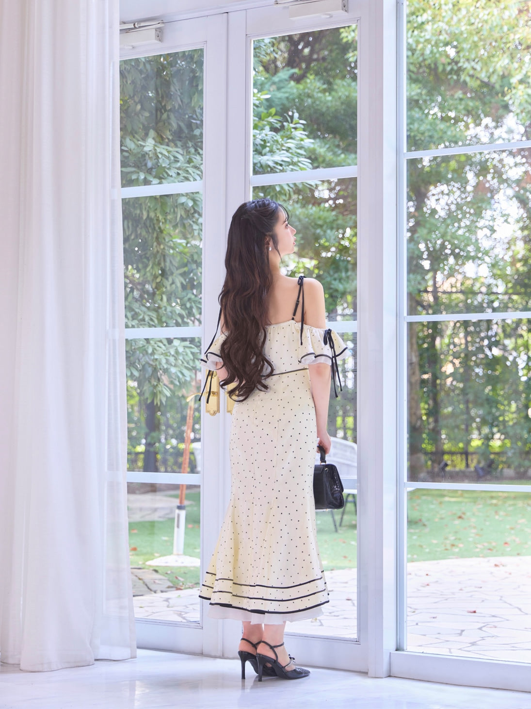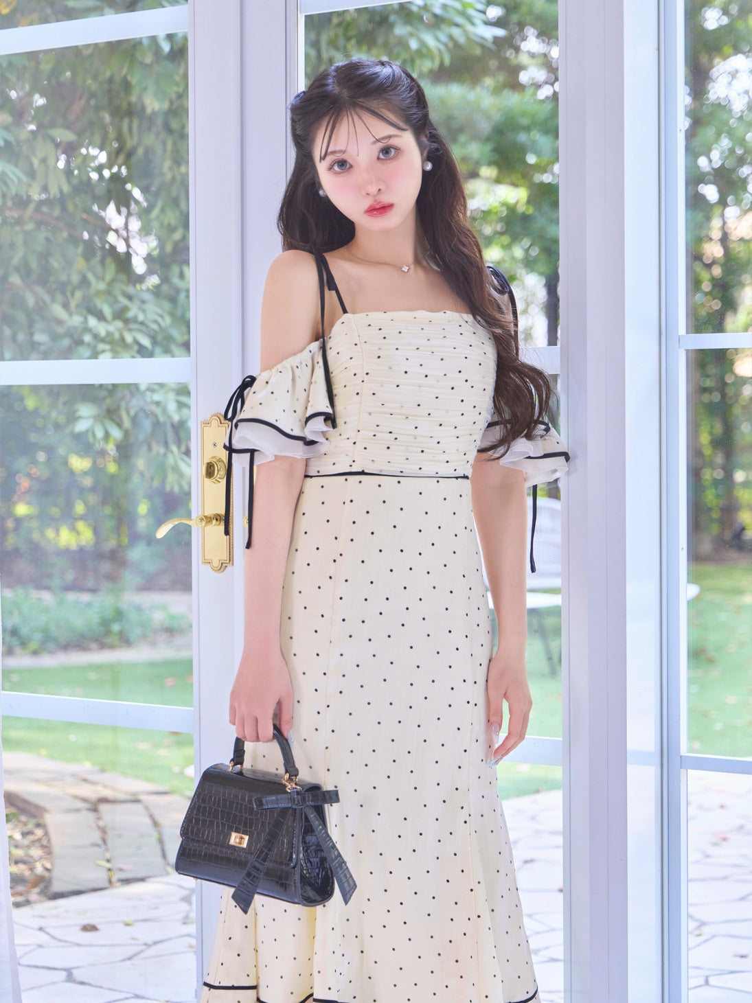 【配色デザインが大人可愛いシフォン素材のドットワンピース】