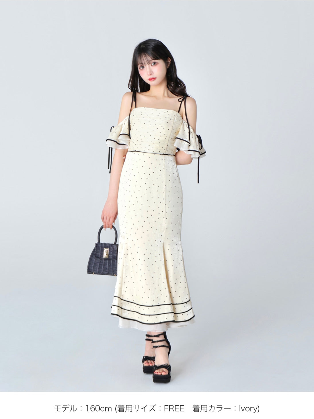 袖裾とスカート裾から覗くホワイトのシフォン生地で軽やかな抜け感を演出し、洗練された1枚に仕上げました。