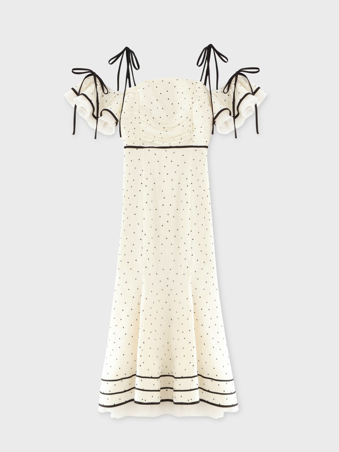 ドットの大きさと間隔に拘り、華やかでありながらどんなシーンにも馴染む手に取りやすい1枚。