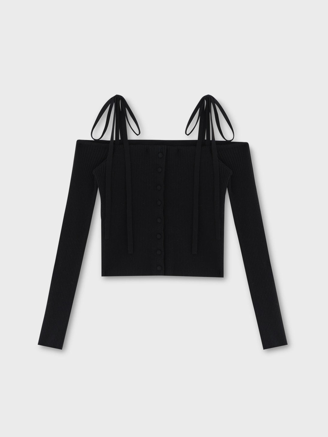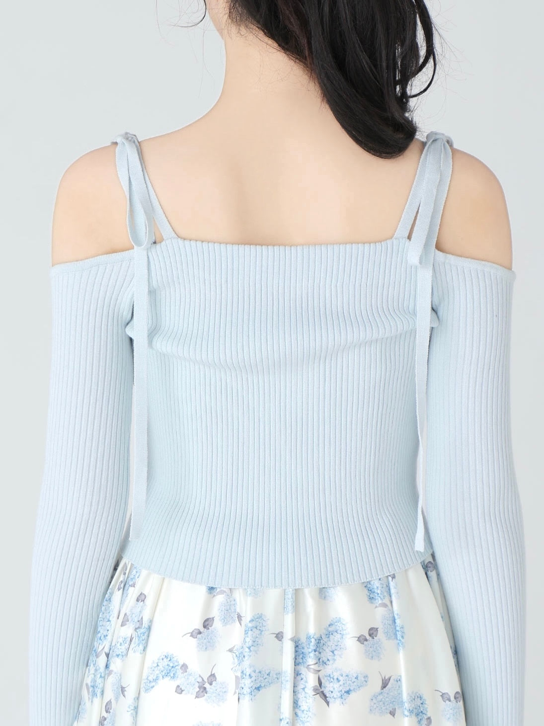華奢見え効果抜群のキャミニットトップス。オフショルダーで抜け感を出せるのも魅力で、大人可愛い印象に導きます。フロントは前立てボタンがさりげないアクセントに。肩紐のリボンは取り外しができるため、その日の気分に合わせてアレンジができます。これからの季節に長く使える薄手のリブ素材は、さらっとした着心地のドライタッチな糸を使用しているので、さまざまなシーンで重宝します。短めの着丈は合わせるボトムを選びません。同色のワンピースと合わせたコーデもおすすめです。