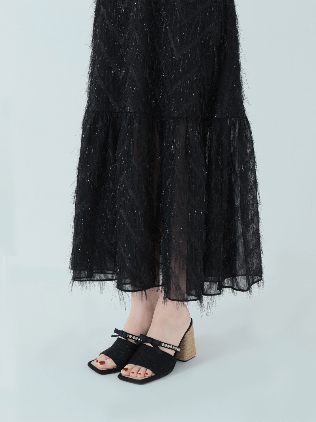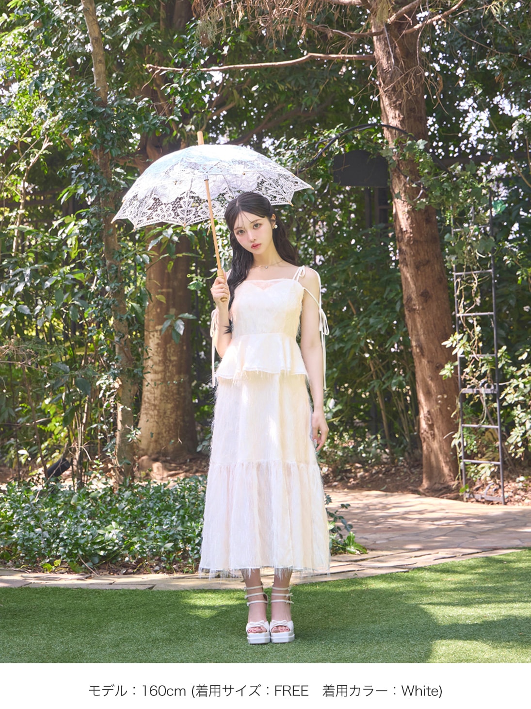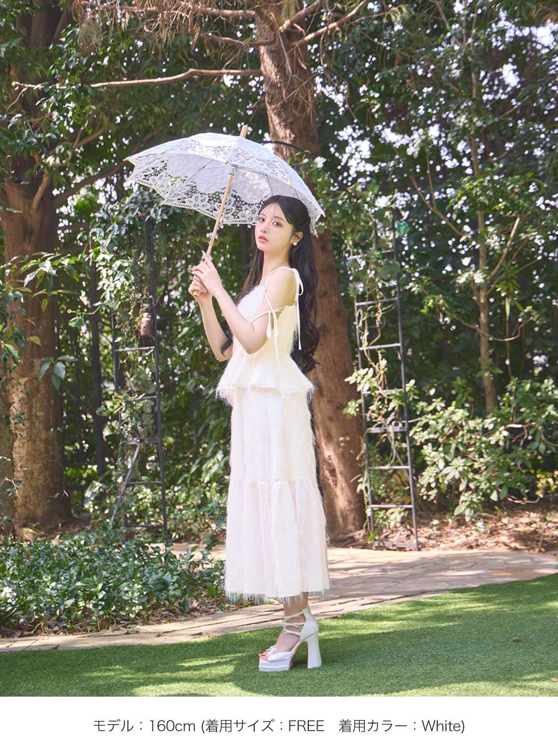 スカートの切り替えから下は透け感があり、軽やかに揺れ動きます。