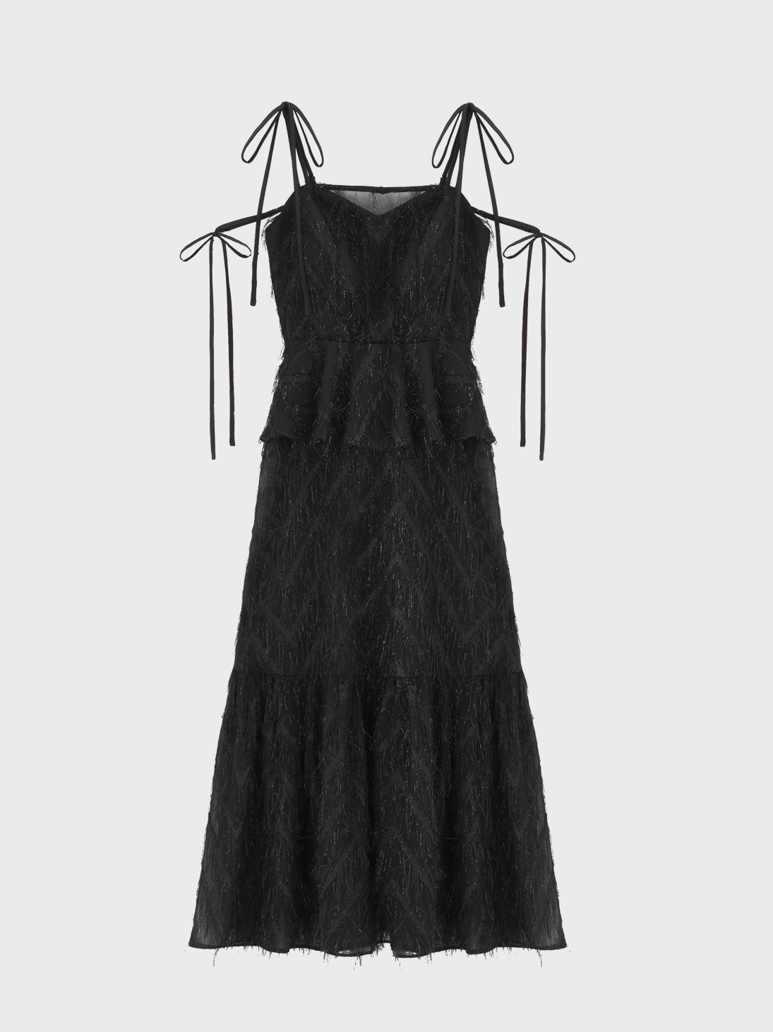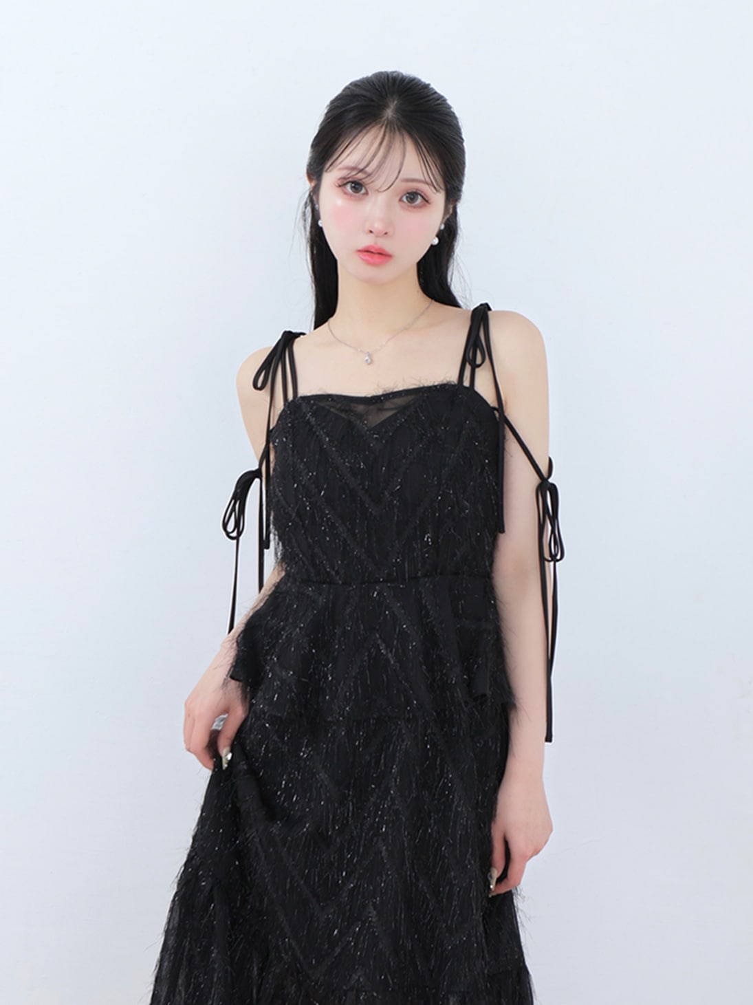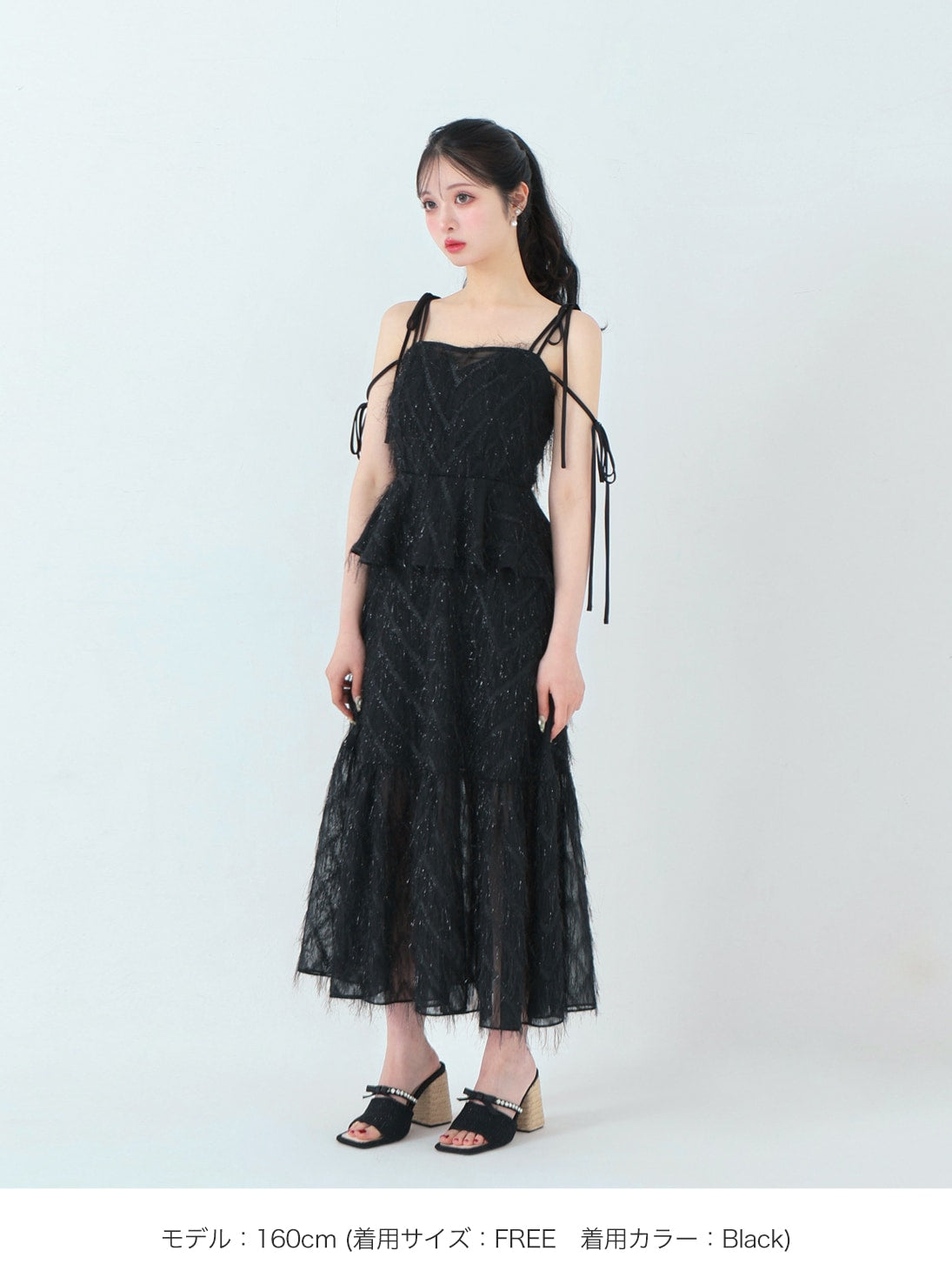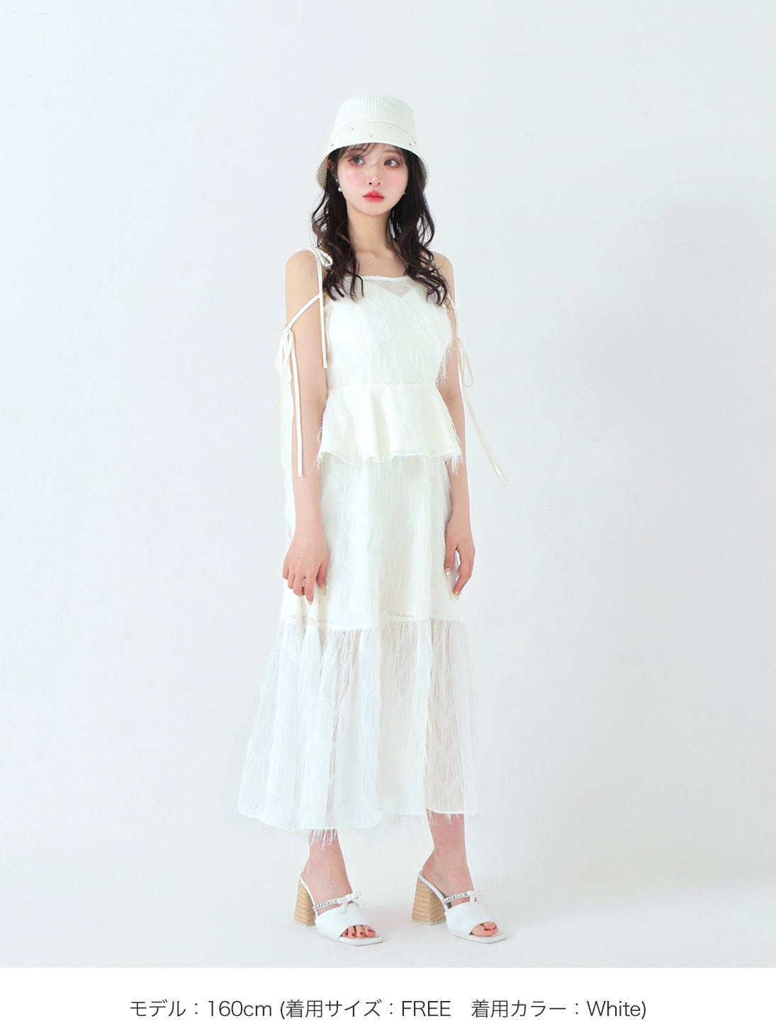 【トレンドのフェザージャガードで魅せる、華やかなキャミワンピース】