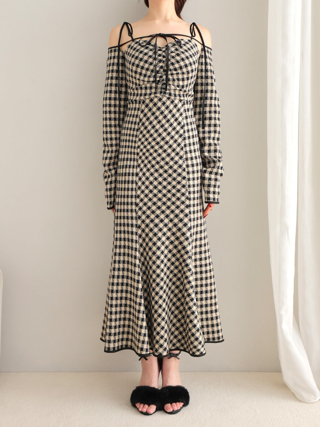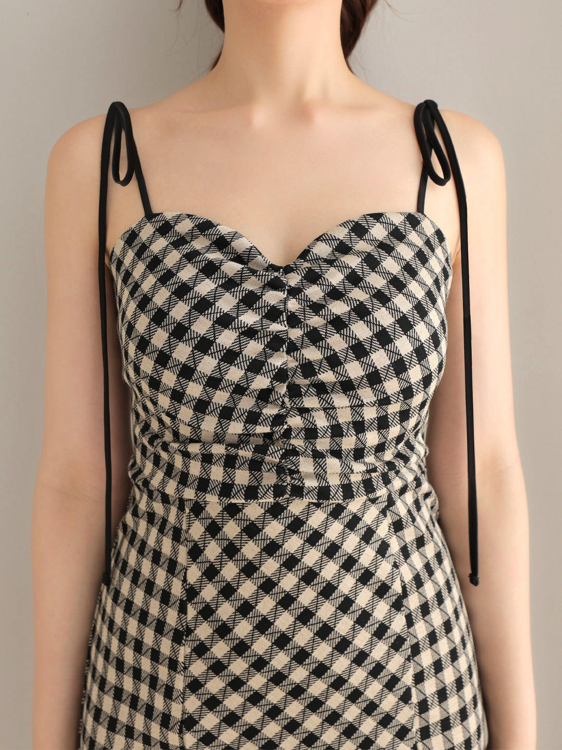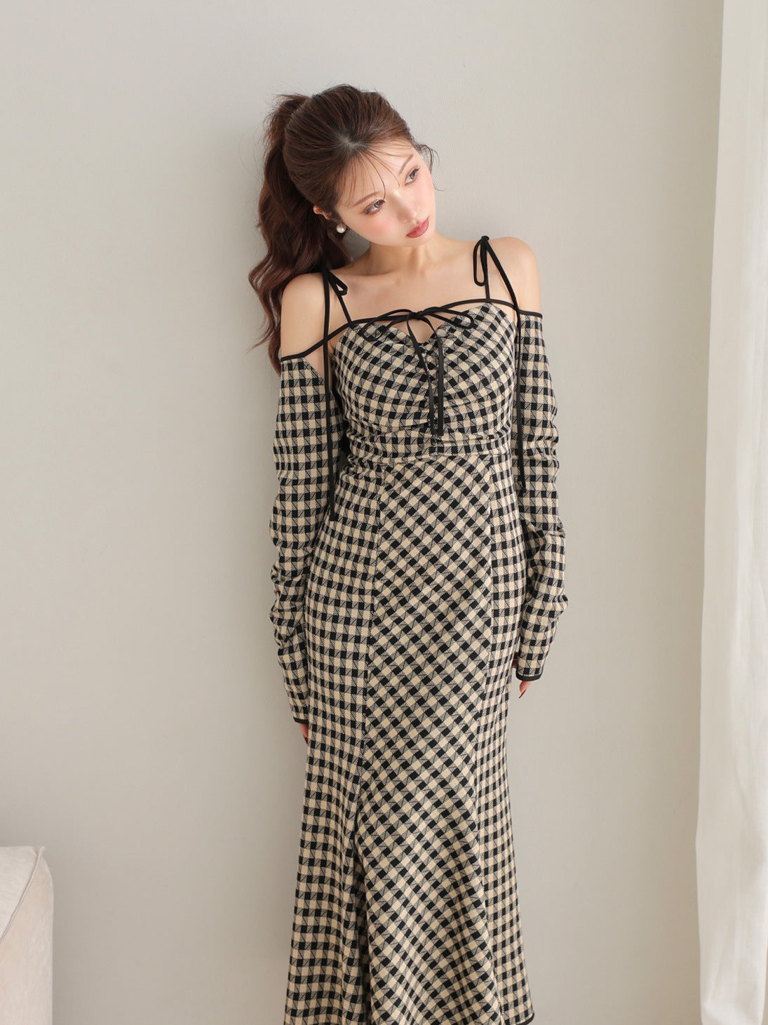 フロントにあしらったリボンや裾のフリルがさりげなくアクセントになり、大人フェミニンな印象に仕上げます。
