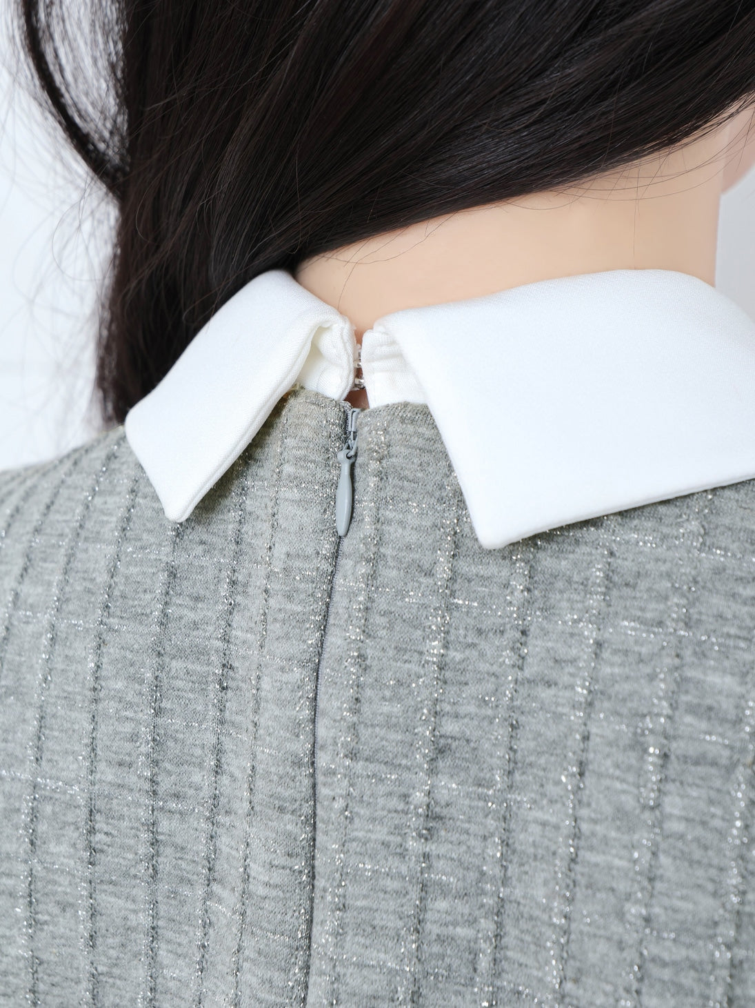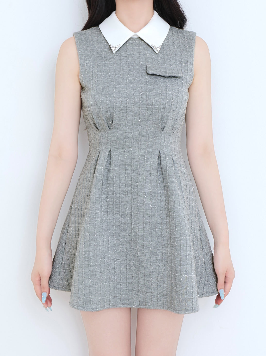 ビジュー付きの襟とフェイクポケットでさりげない華やかさを添えました。
