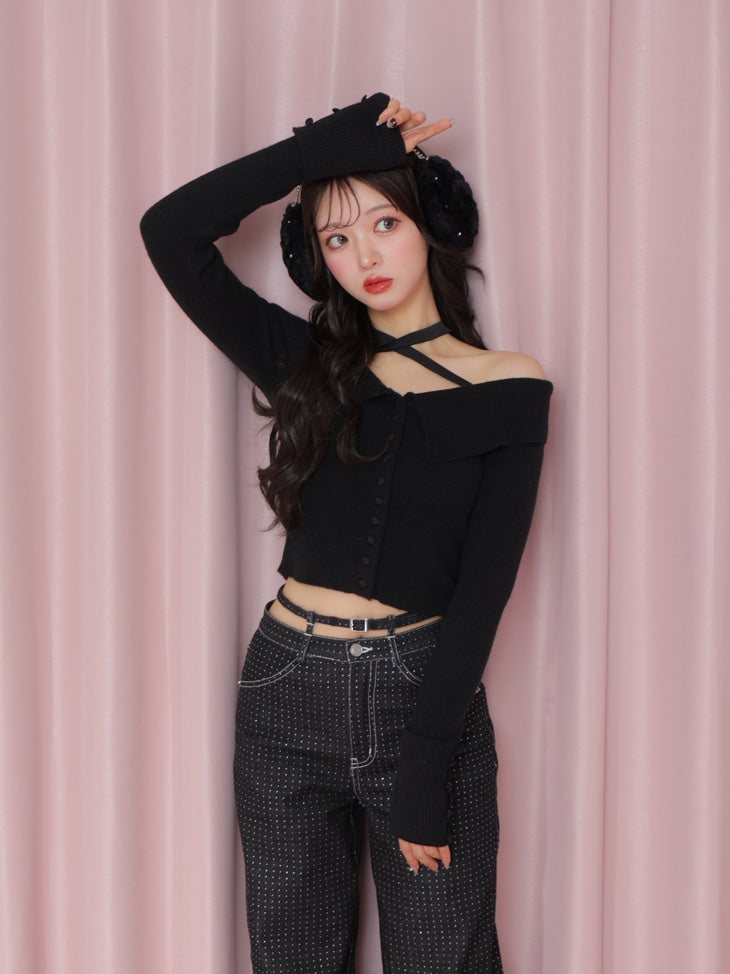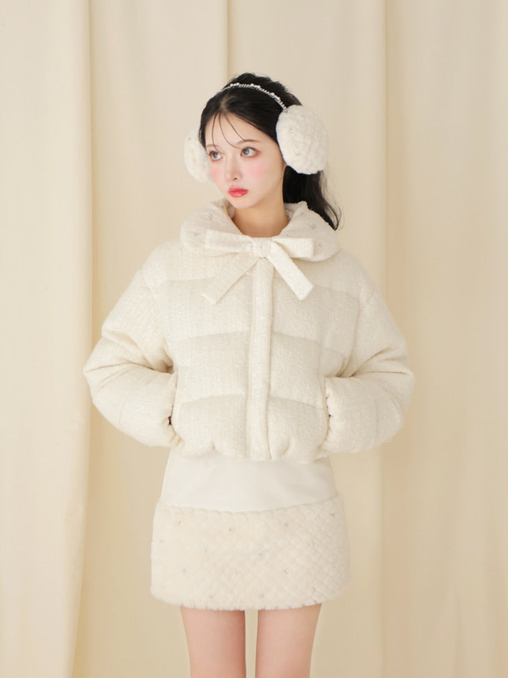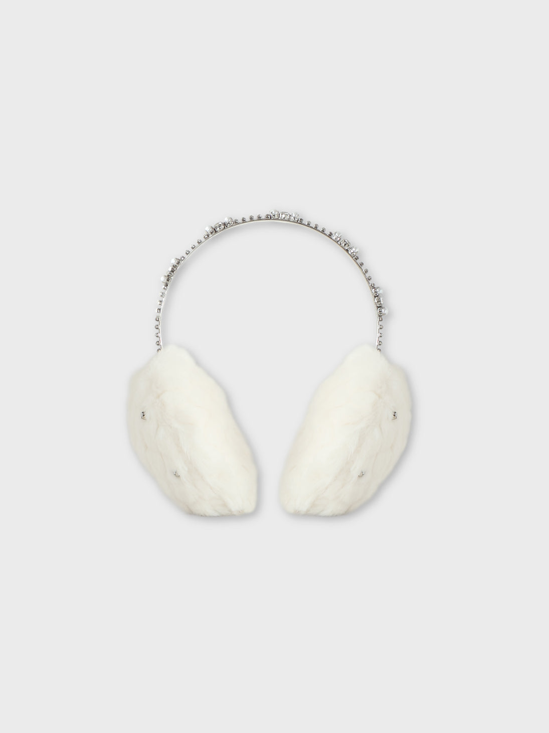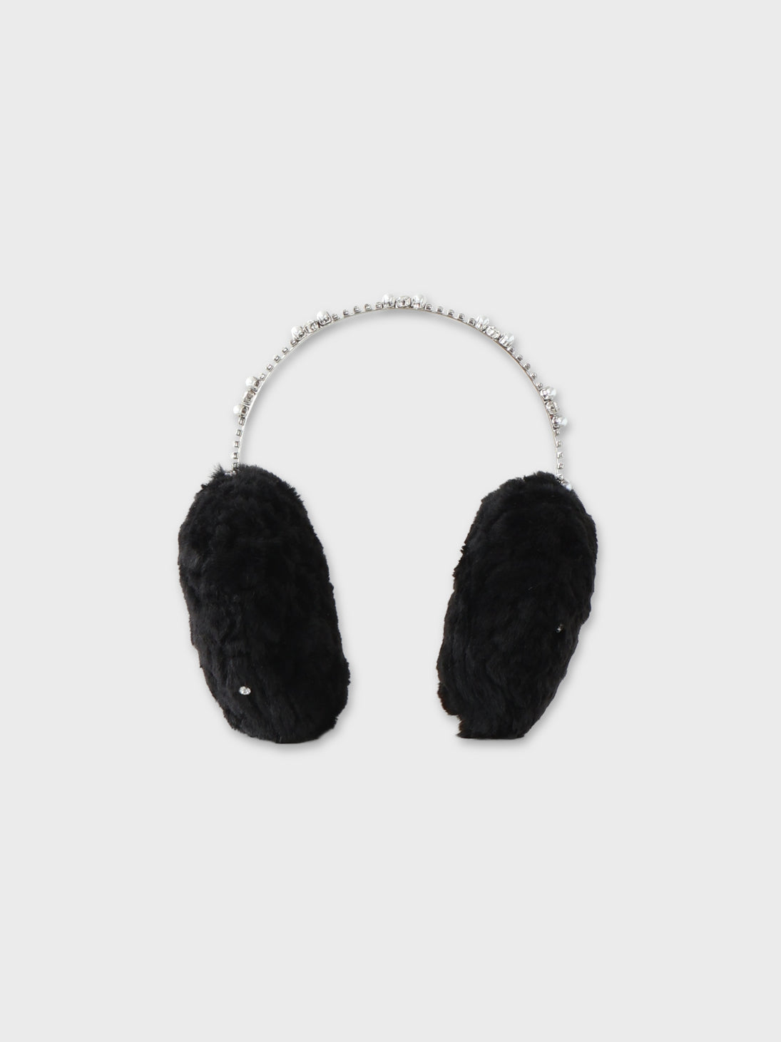耳当て部分はビジューを配置した格子柄で、キラキラとさりげなく輝きを放ちます。