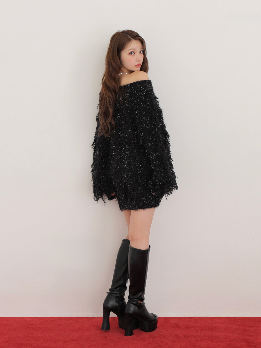 【オーバーシルエットで華奢に見せてくれる♡デザインが魅力のフリンジニットワンピース】