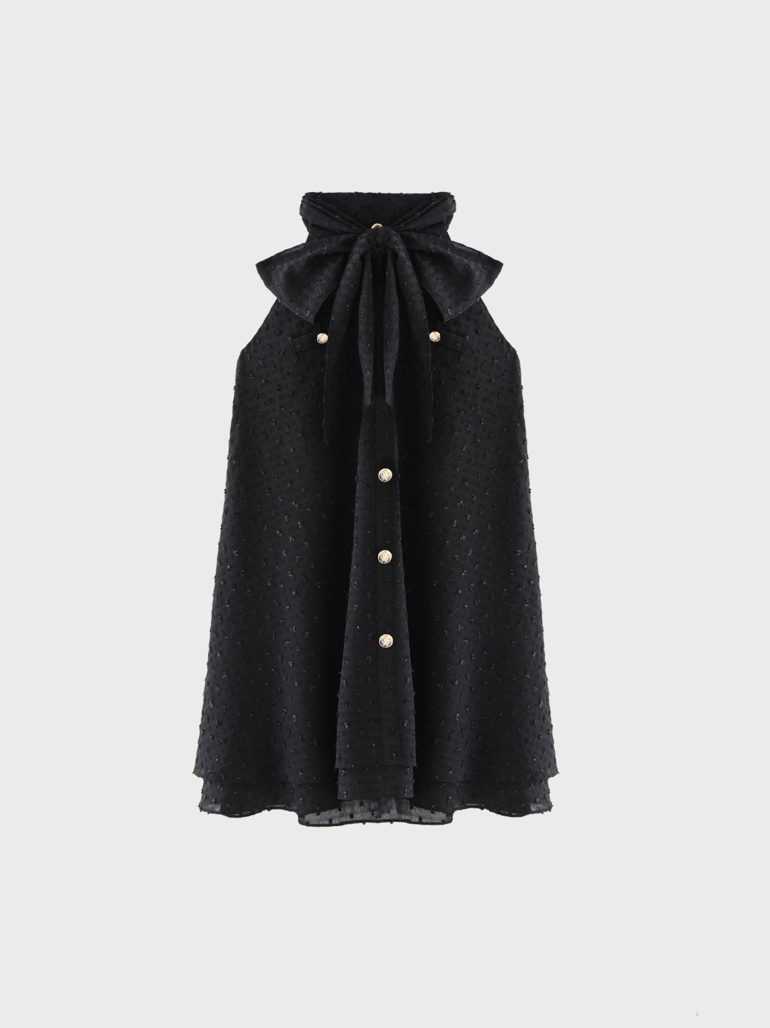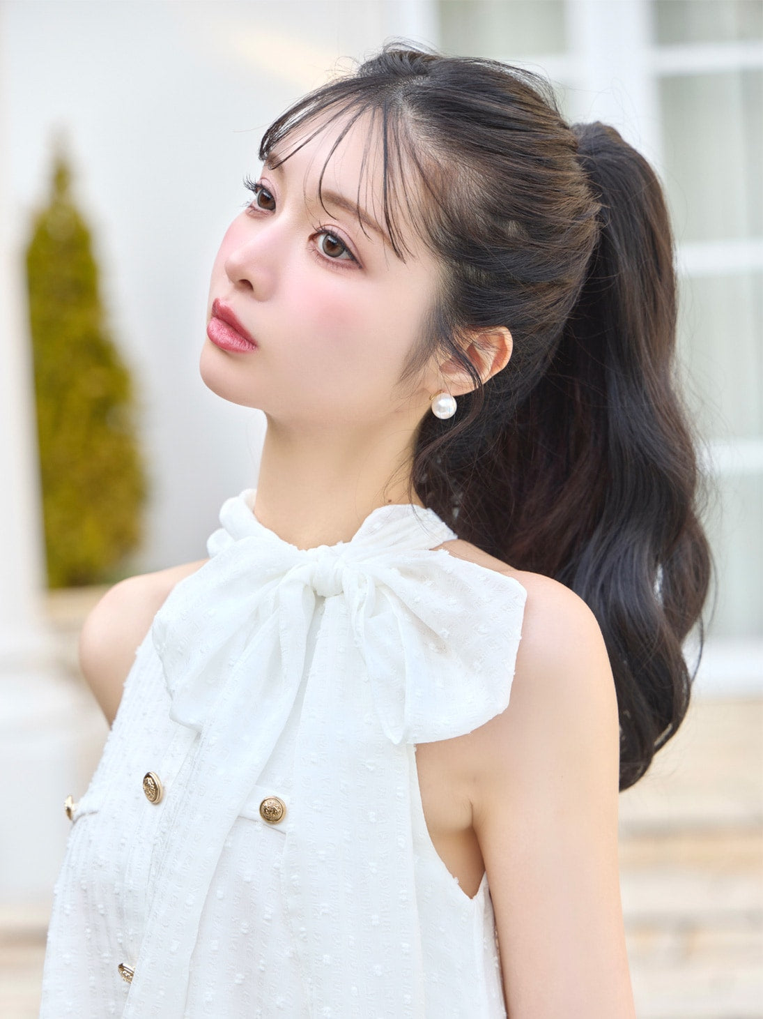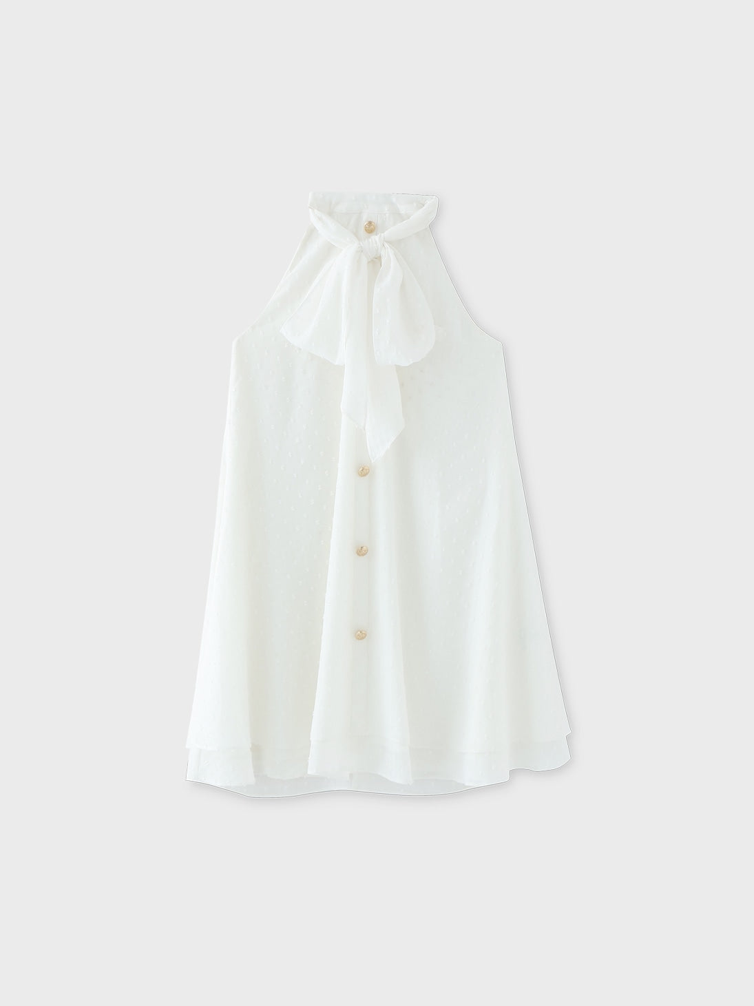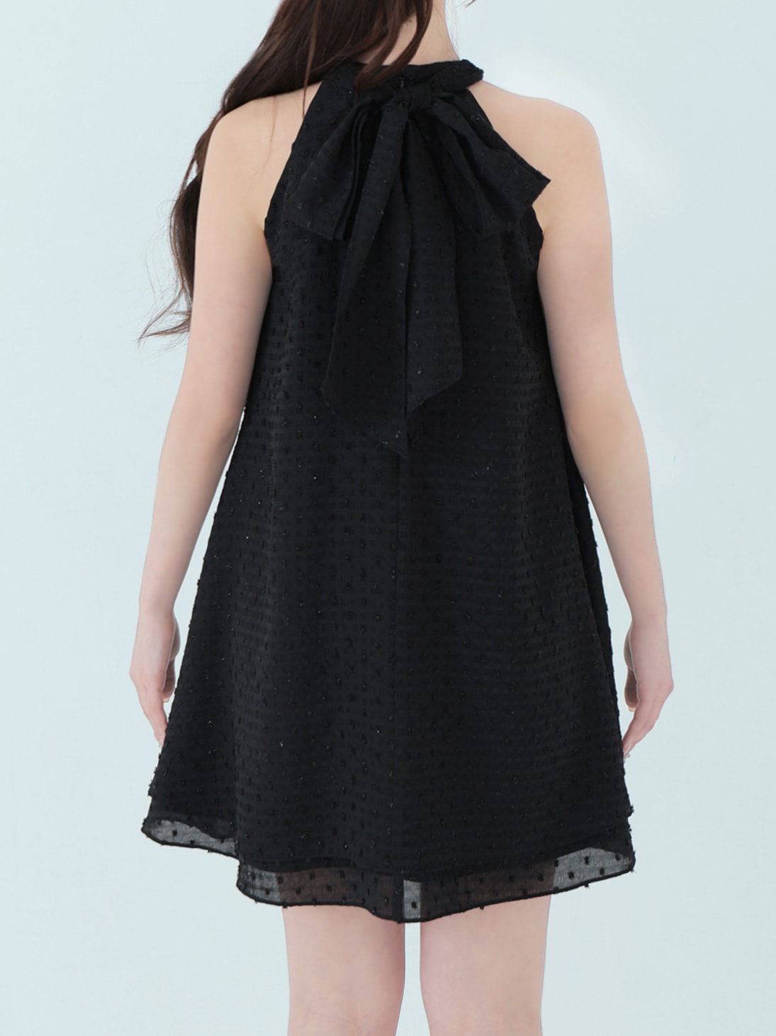 ホルターネックのリボンは前後お好きな位置で結んでいただけます。