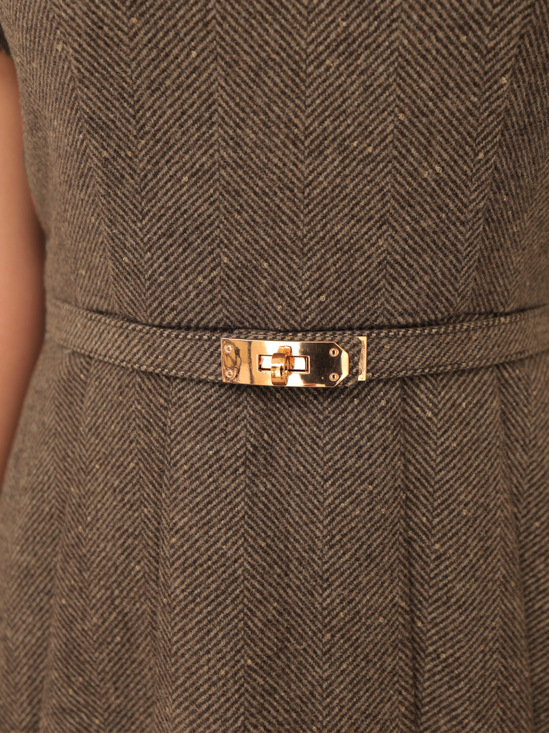 【クラシカルなディテールで魅せる、大人のヘリンボーンワンピース】