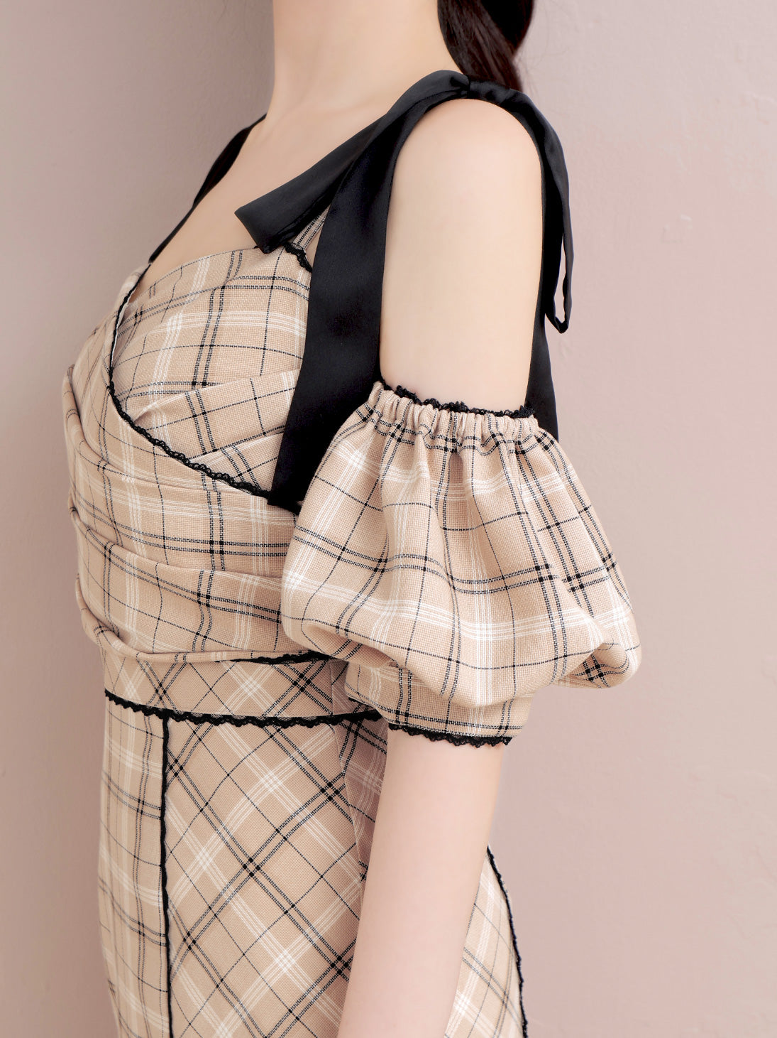 【大胆チェックと配色デザインでつくる大人ドーリーワンピース】