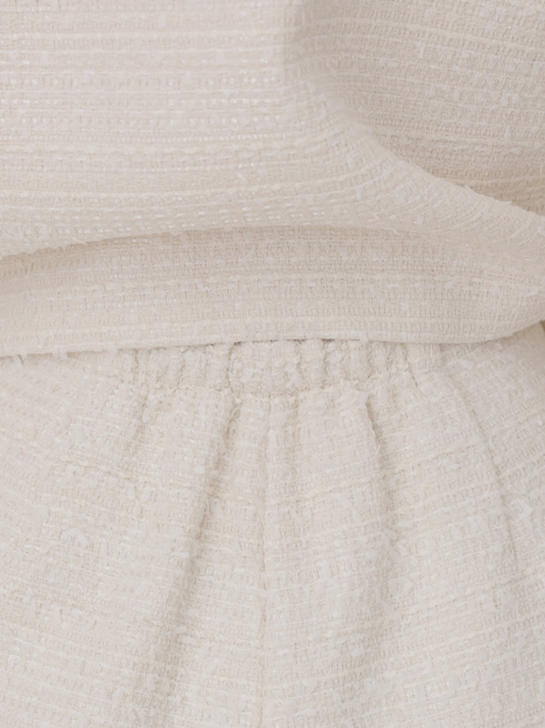 糸の凹凸が生む奥行きのあるツイード素材を使用したショートパンツ。