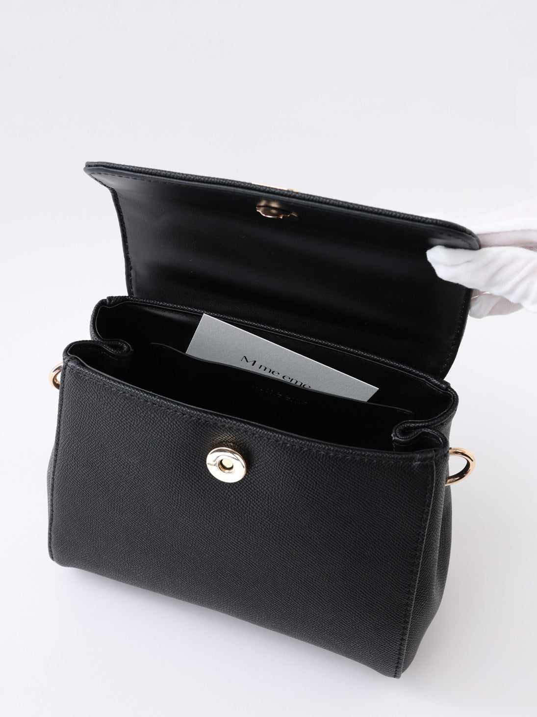 台形フォルムに上質感のあるフェイクレザーを使用し、シンプルながらも高級感のある印象に仕上げました。