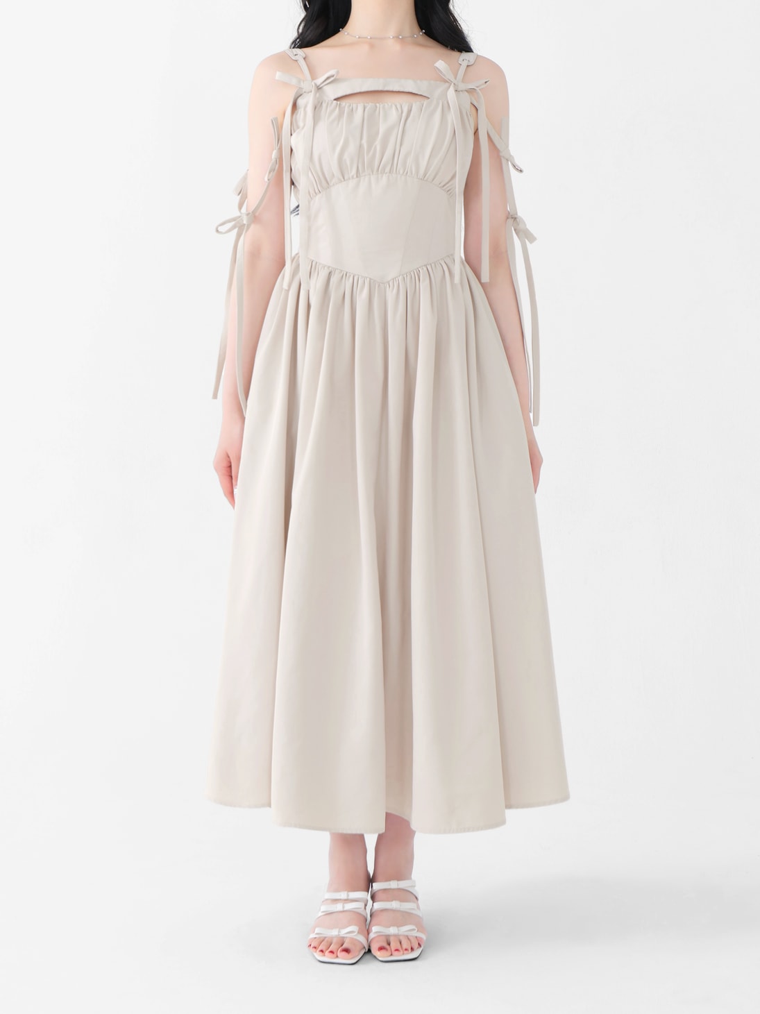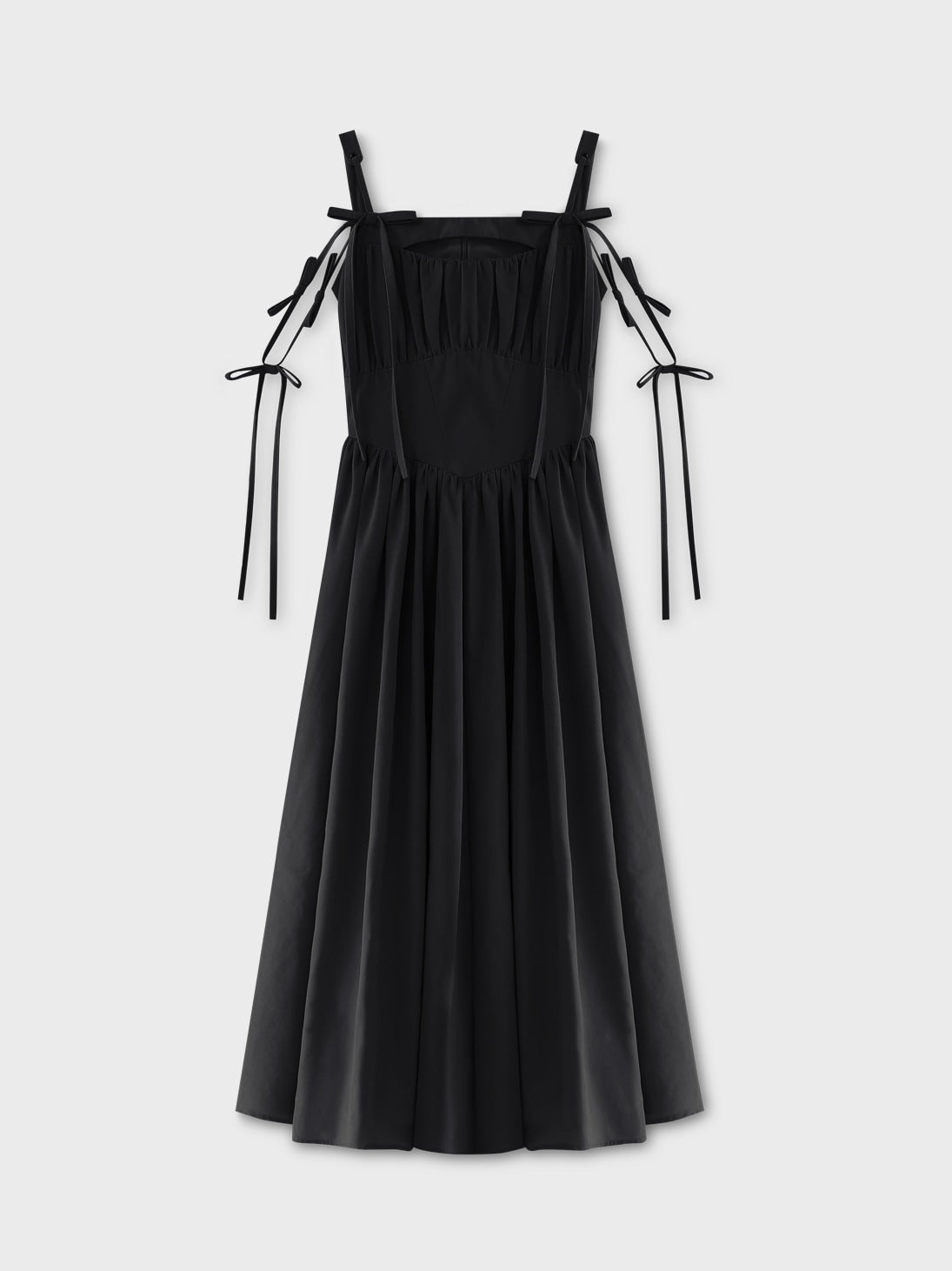 肩ストラップにはアイレットとリボンをあしらい、繊細で華奢な印象に。