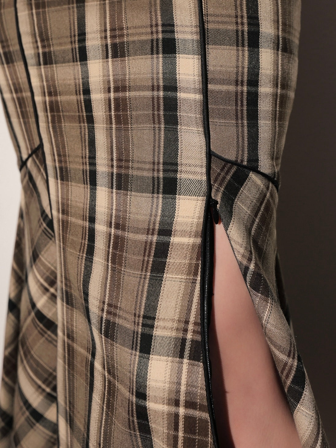 裾にはコンシールファスナーを配し、歩くたびにしなやかな動きを演出。