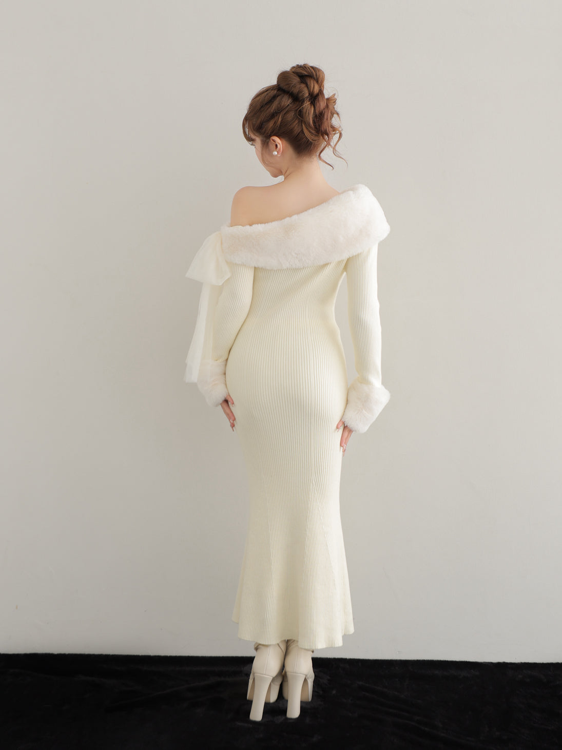 ふんわりとしたファーが印象的な冬の主役級マーメイドワンピース。
