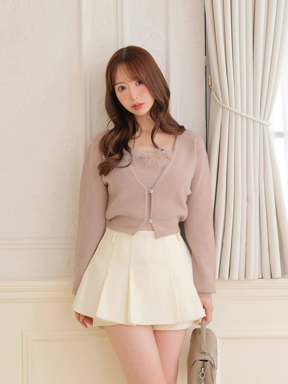 キャミソールとカーディガンがセットになったアンサンブルデザインで、さっと羽織るだけでコーデが完成。