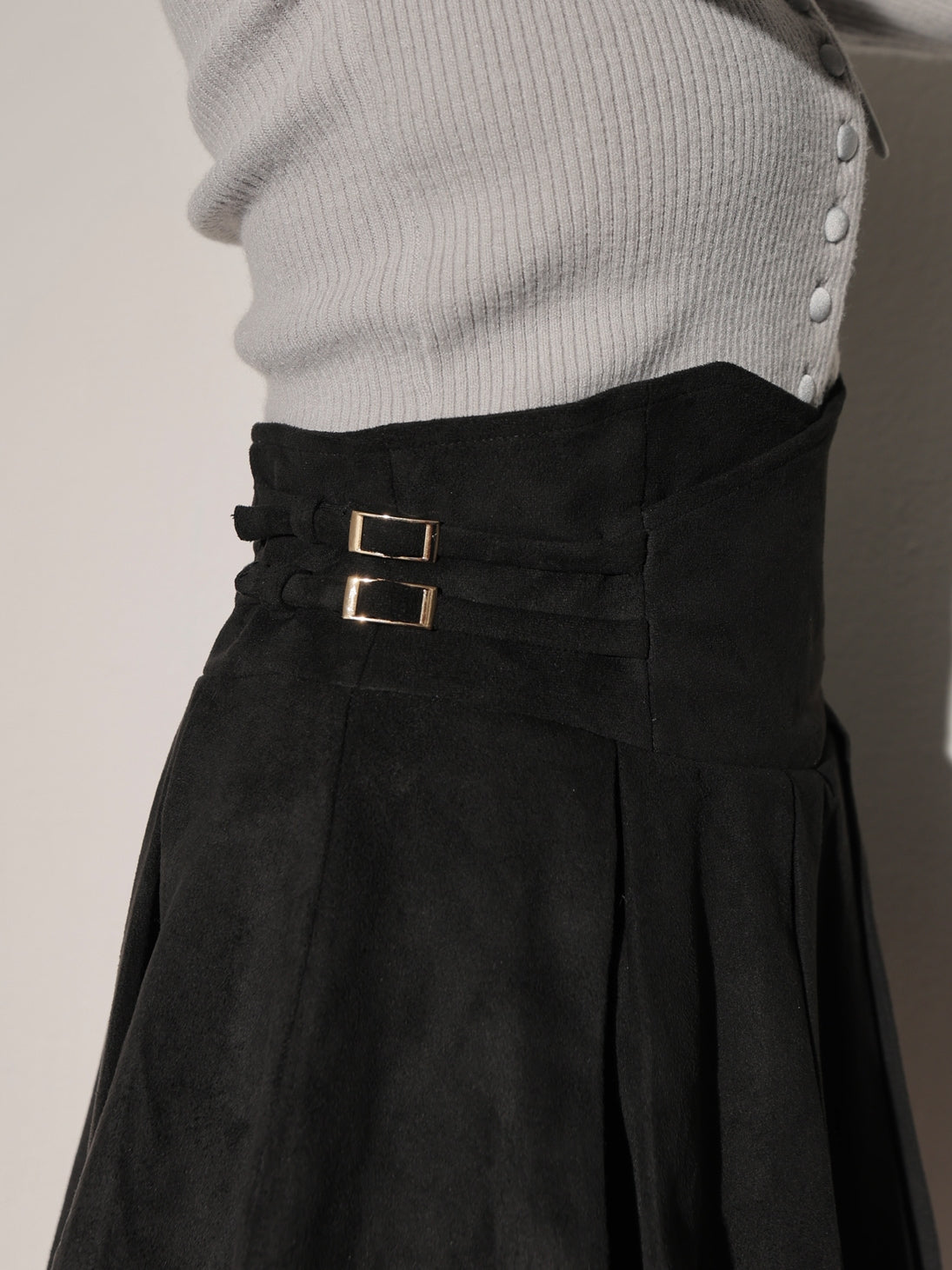 ふんわりと広がるプリーツラインが歩くたびに女性らしさを引き立て、シンプルでありながらも印象的なデザインに仕上がっています。