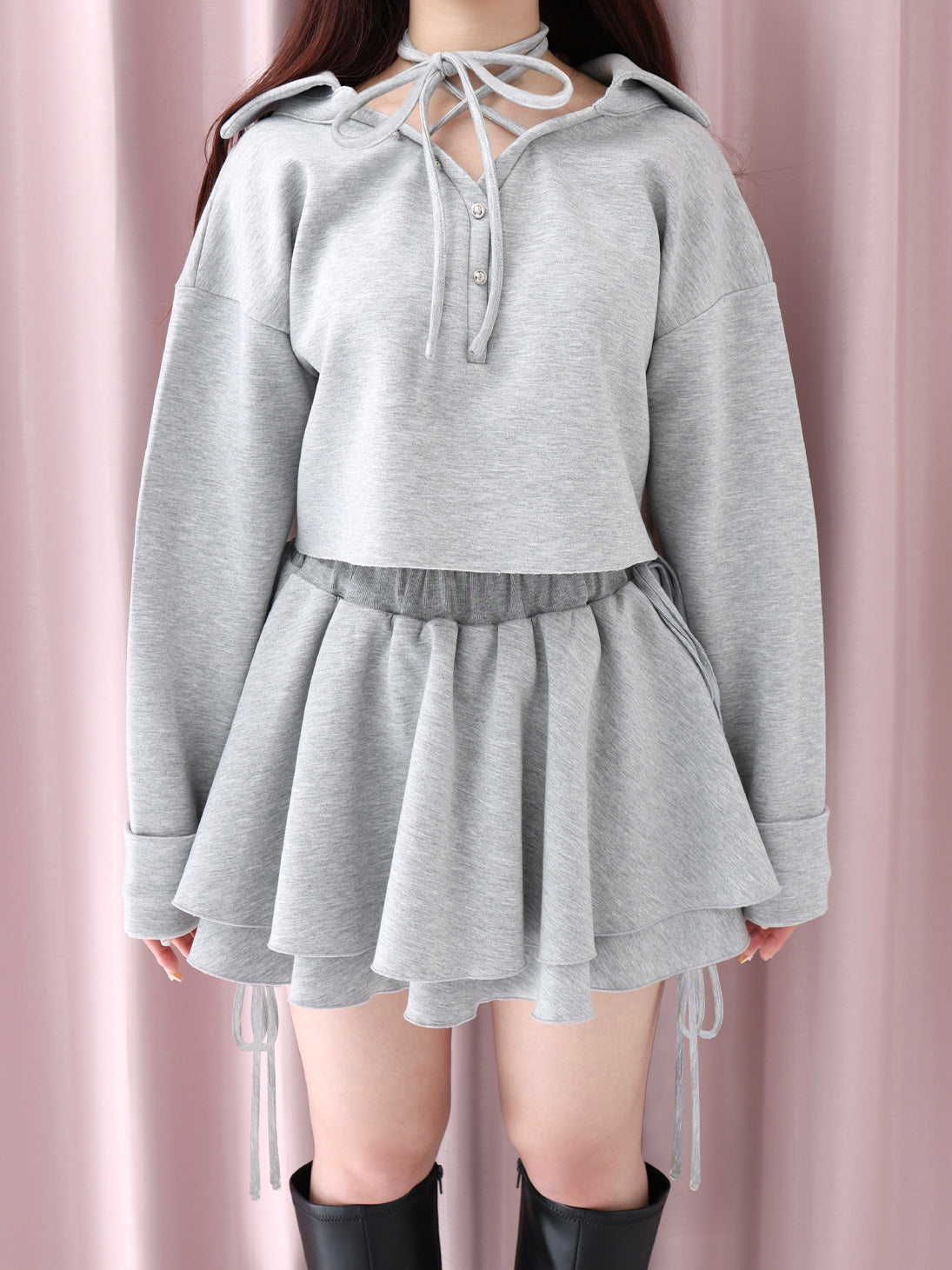 ・首元のリボンは結ぶ仕様で、さまざまなアレンジが可能