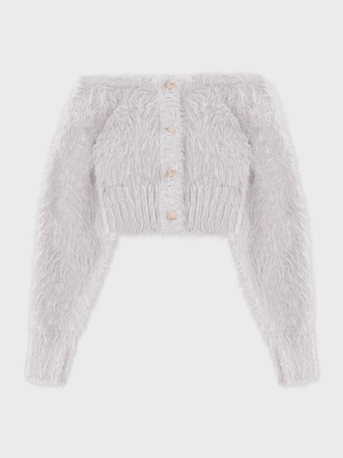 毛足のある素材に繊細な透明ラメが動くたび上品に輝き、今すぐ着られて春らしさも感じられます。