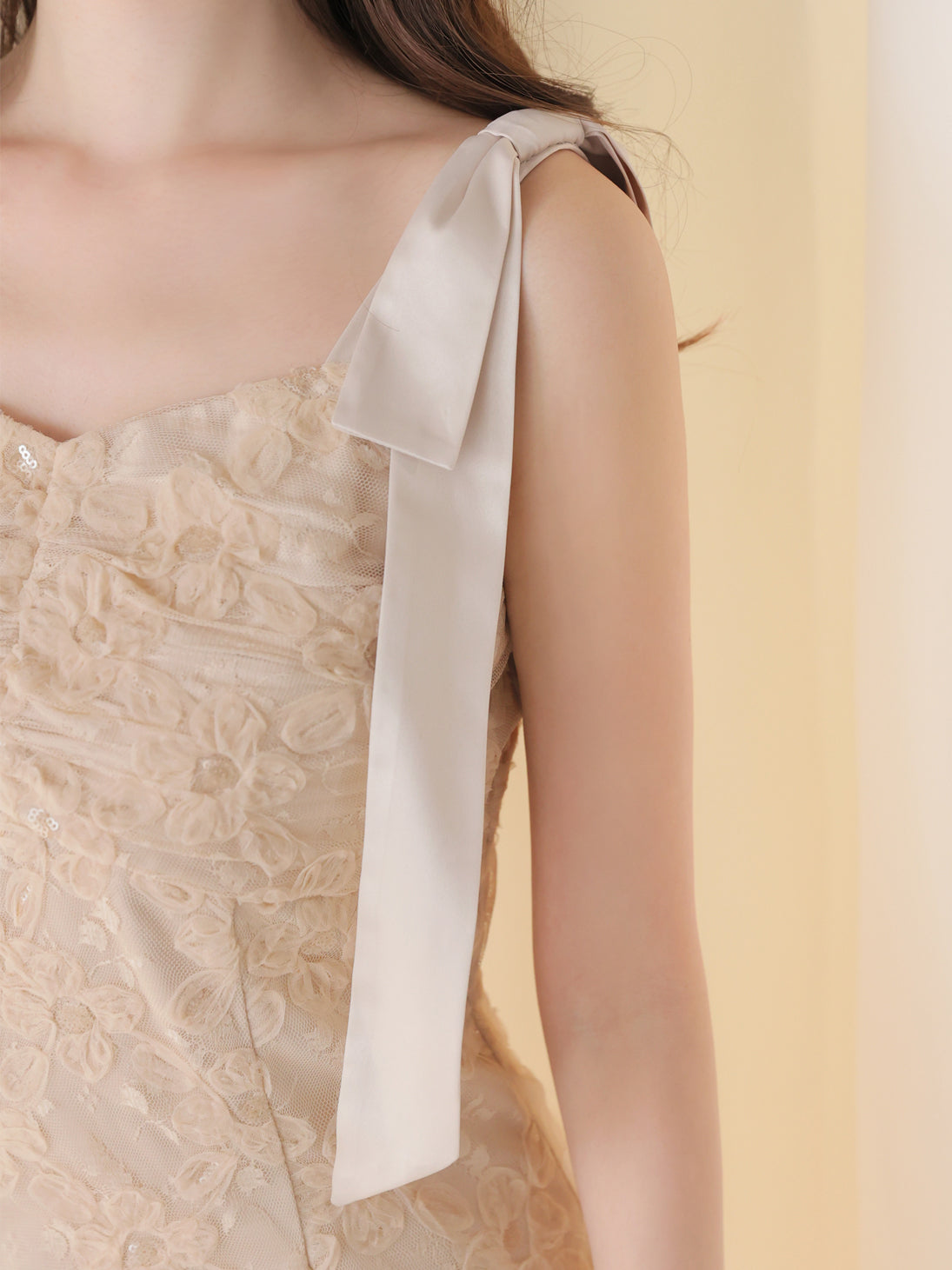 リボンは固定仕様で、甘くなりすぎず大人っぽい印象で着用いただけます。