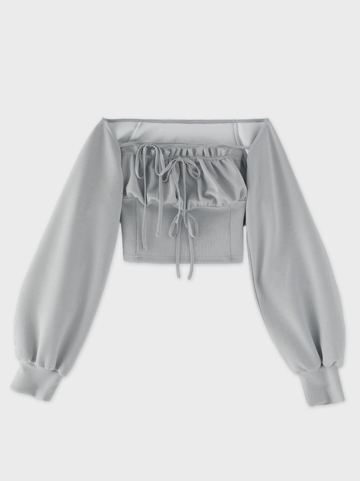 ラメ箔プリント加工を施した生地を使用し、動くたびにさりげなくきらめく表情が魅力です。